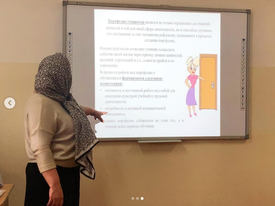 27.02.2021Очередной субботний методический семинар для педагогов школы провела учитель начальных классов Газиева П.Ш на тему «Портфолио как средство оценивания качества достижений учащихся».На семинаре учителя разбирали функции портфолио на примерах портфолио учащихся начальной, основной и средней школы. Основные функции портфолио:1. Диагностическая – фиксирует изменения и рост за определенный период времени;2. Целеполагания – поддерживает учебные цели;3. Мотивационная – поощряет результаты учащихся, преподавателей и родителей;4. Содержательная – раскрывает весь спектр выполняемых работ.Положительный эффект от семинарских занятий - это увлечённость молодых педагогов азами профессии и одобрительные отзывы педагогов с опытом работы.