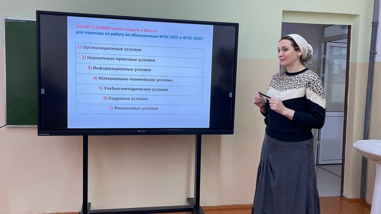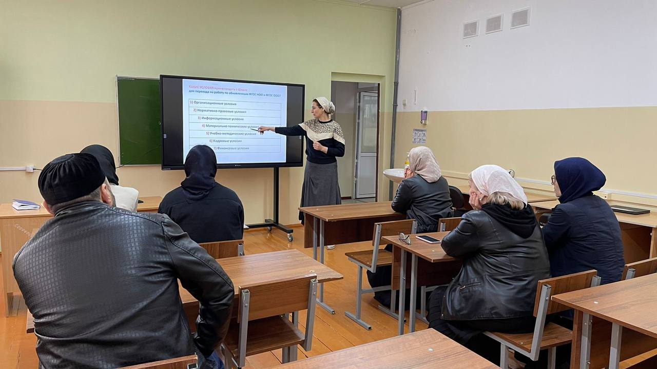 10.05.2022Субботний семинар, проведённый 7 мая 2022 года, был посвящён переходу образовательных организаций РФ на обновлённый ФГОС-2021. Директор школы Х.Л. Солсанова, используя федеральные документы и методические материалы ГБУ ДПО «ИРО», обсудила этапы перехода на обновлённые ФГОС с представителями педагогических рабочих групп.