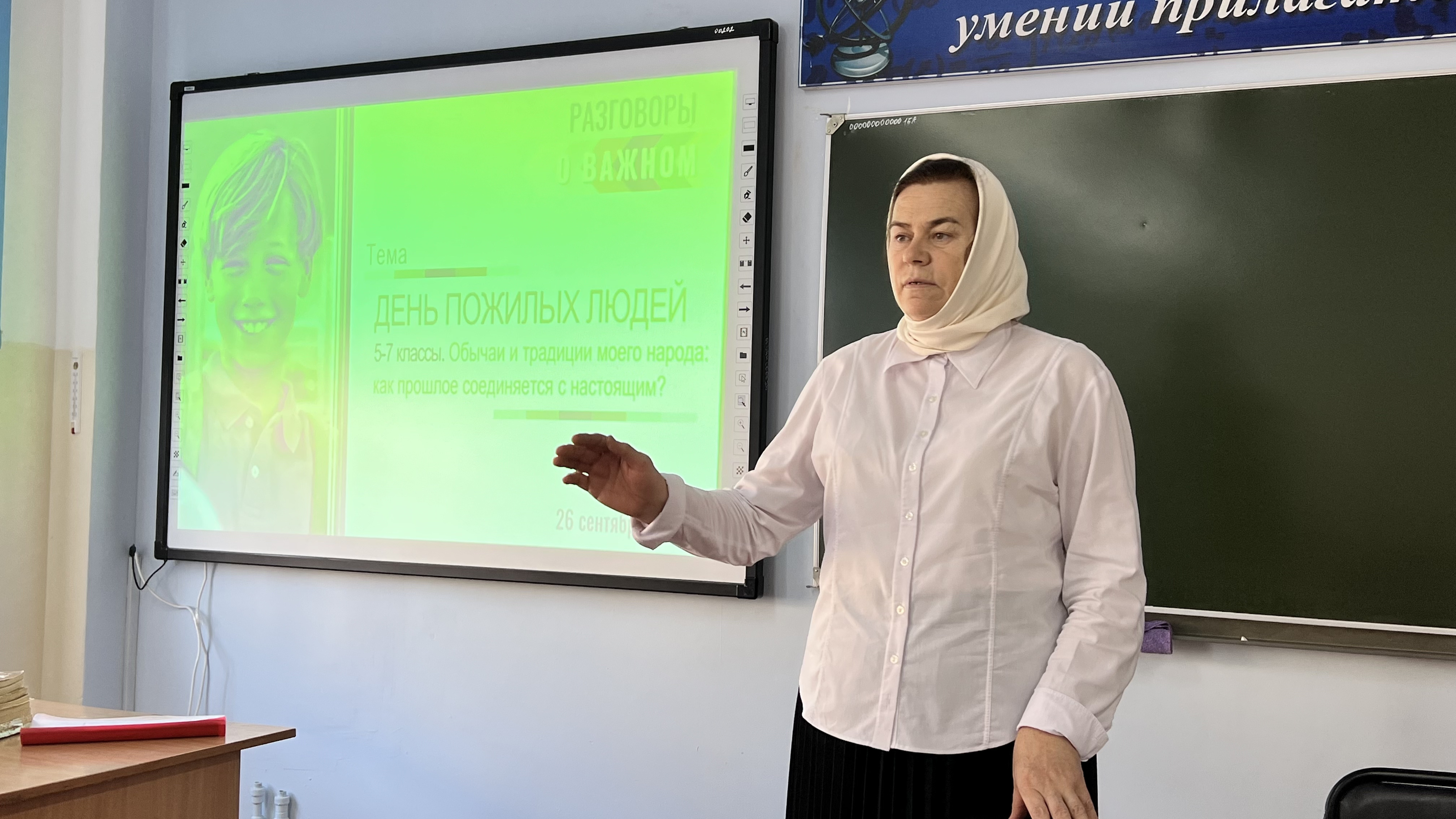 Тема урока была «День пожилых людей», дети в игровой форме провели ВД, разбились на команды для интерактивного элемента,просмотрели видеоролики и презентации урока #Разговорыоважном