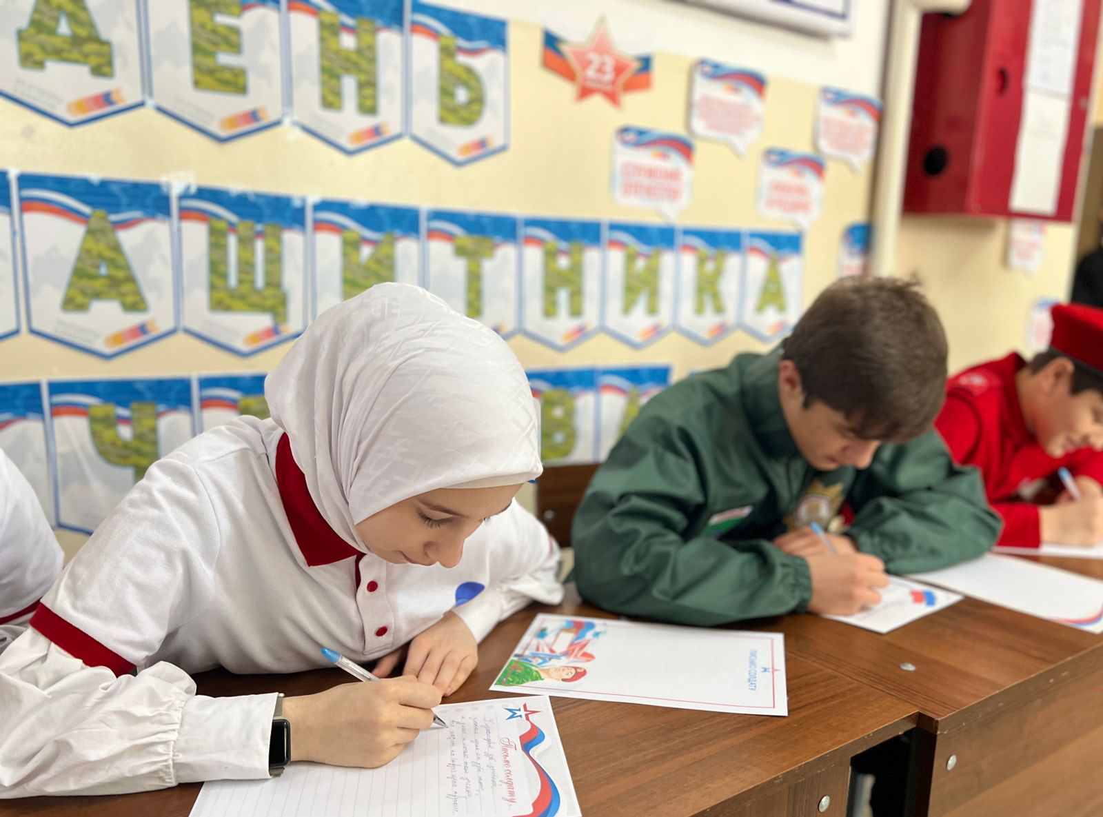 23 февраля вся страна будет отмечать День защитника Отечества. В преддверии этого дня в школе прошла акция «Письмо Солдату». Активисты отрядов «Юная Армия» 🇷🇺, «Юные Кадыровцы» 🇷🇺 и отряда РДШ 🤍💙❤️ подготовили письма и открытки солдатам РФ🇷🇺🇷🇺🇷🇺