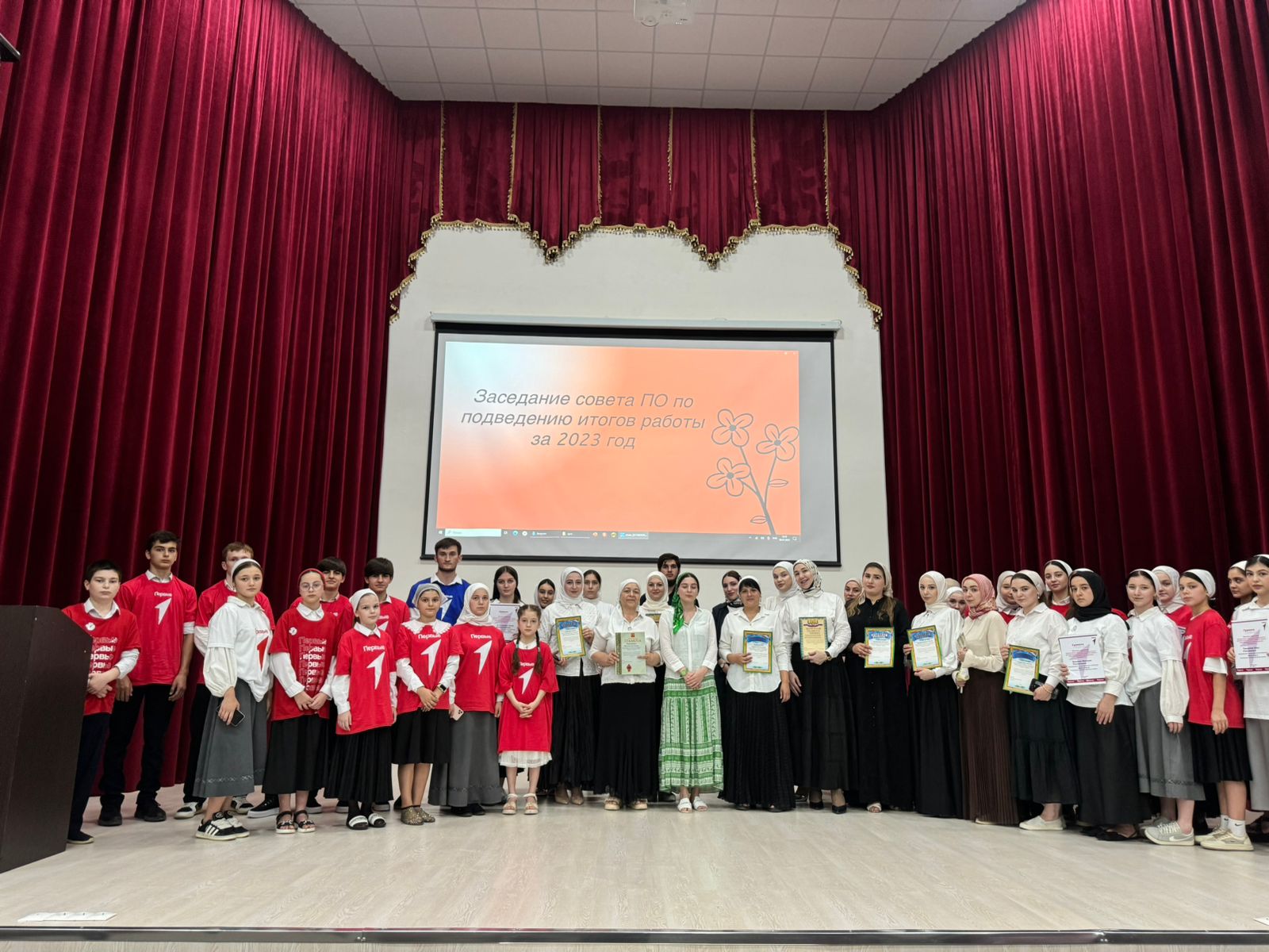 С поздравительными словами перед награждаемыми выступил префект района. Магомед Ханпашиевич отметил, что несмотря на учебную загруженность, активисты движения находят время для проявления и реализации самых смелых инициатив и идей. Он также поблагодарил ребят за продвижение "Движения Первых" в нашем районе и в республике в целом. В результате проделанной работы активисты, не без поддержки своих кураторов, были награждены футболками «Движения Первых».