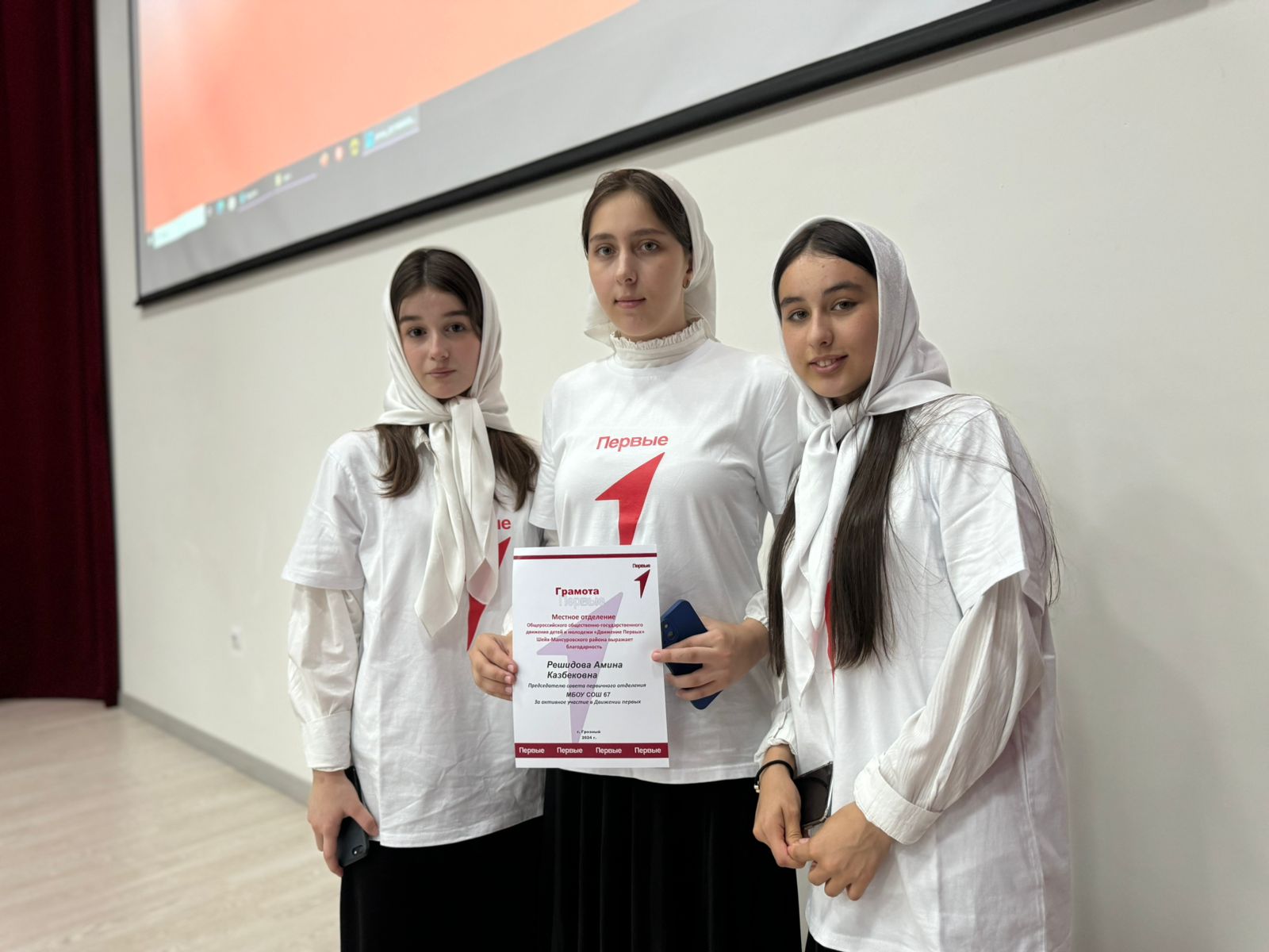 25.07.2024В рамках реализации федерального проекта «Успех каждого ребенка» национального проекта «Образование» ученица 9 класса МБОУ «СОШ № 67» г. Грозного Решидова Амина Казбековна была награждена почётной грамотой за активную деятельность в проекте «Движение первых».