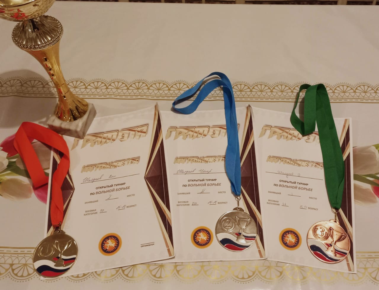 25.07.2024В рамках реализации нацпроекта «Образование» федерального проекта «Успех каждого» ученики 3 «Б» класса муниципального бюджетного общеобразовательного учреждения «Средняя общеобразовательная школа №67» города Грозного Шалдаев Али, Шалдаев Умар, Шалдаев Дауд стали победителями и призерами регионального этапа открытого турнира по вольной борьбе.