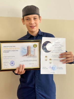 24.08.2024В рамках реализации национального проекта «Образование» федерального проекта «Успех каждого ребёнка» обучающий МБОУ «СОШ № 67» г. Грозного 9 «А» класса Муртазалиев Дени участвовал в конкурсе «Лучший чтец Корана». Стремление Дени к постижению школьной образовательной программы не ограничивается изучением учебных предметов, он нашёл для себя интересное и важное для него дело – изучение арабского языка. А вся красота арабского языка отражена в священной для мусульман книге «Коран». Изучая арабский язык, читая суры из Корана, Дени приобщился к огромной многогранной культуре людей, исповедующих Ислам. Республиканский конкурс «Лучший чтец Корана» стал для Дени творческим испытанием, которое он прошёл успешно. Среди своих сверстников Дени занял первое место! Его стремление, усердие и благородная цель дали свои плоды –он стал победителем республиканского конкурса.