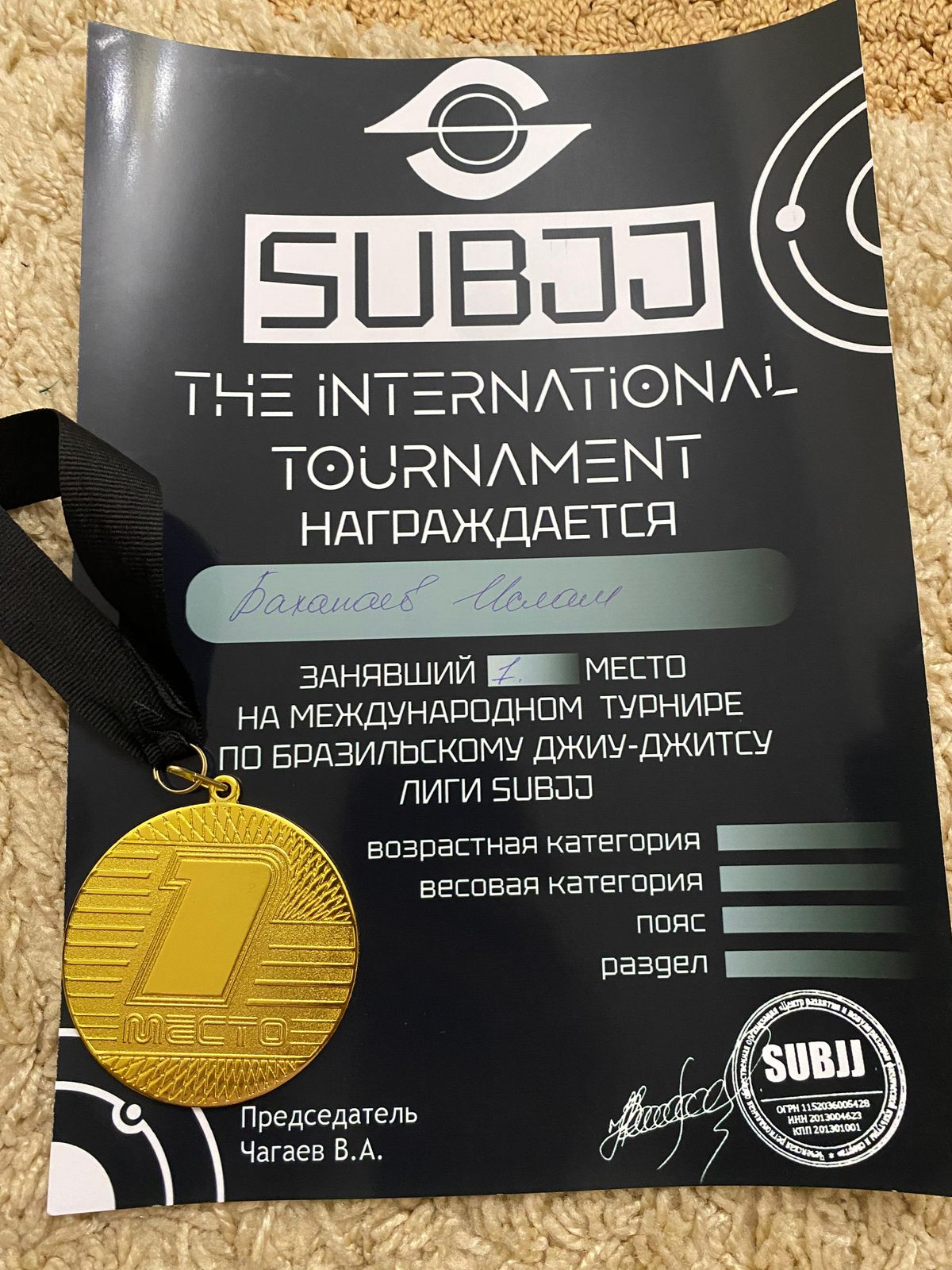 Ислам начал свои занятия бразильским джиу-джитсу всего год назад. Несмотря на то, что его путь в этом виде спорта только начинается, он проявил невероятную преданность и упорство. На протяжении всего года он посещал тренировки несколько раз в неделю, что требует не только физической подготовки, но и дисциплины. Под руководством опытного тренера ему удалось освоить основные приемы и техники джиу-джитсу.