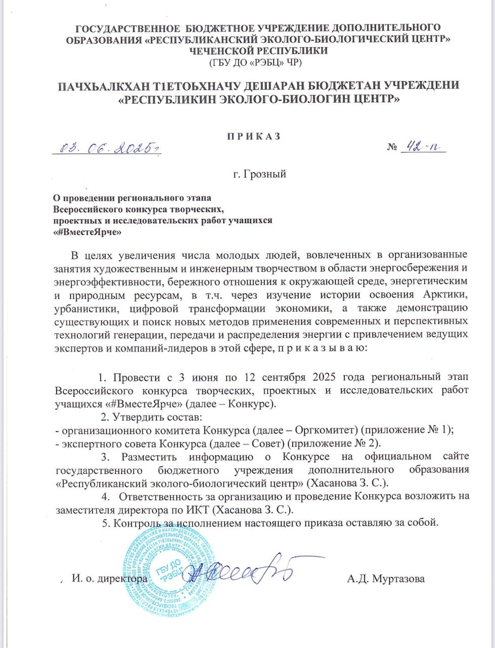 15.09.2025ДОРОГИЕ ДРУЗЬЯ! «Республиканский эколого-биологический центр» объявил о начале Всероссийского конкурса "Вместе ярче" Приглашаем принять участие в ежегодном Всероссийском конкурсе #Вместе ярче, направленном на продвижение идей энергосбережения, бережного отношения к ресурсам и экологически ответственного поведения! Цели конкурса: – Повышение осведомлённости о способах экономии энергии – Формирование экологической культуры среди детей, молодёжи и взрослого населения – Развитие творческих способностей и инициатив Участники: К участию приглашаются учащиеся школ, студенты, педагоги, семьи и все, кому близка тема энергосбережения и экологии. Номинации: – Эссе и статьи – Презентации и проекты – Творческие работы (рисунки, плакаты, поделки) Победителей ждут дипломы, призы и возможность представить свои работы на федеральном уровне! Присоединяйтесь к движению за светлое и энергосберегающее будущее! \#ВместеЯрче #Энергосбережение #Экология #Конкурс2025 #ВместеЯрче2025
